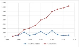 افزایش تجمعی و سالانه تعداد دوربین‌ها در سیستم‌های مداربسته شهری در هشت شهر لهستان (گدانسک، کاتوویتس، کیلچه، لوبلین، لودز، پوزنان، ورشو، و وروتسلاو)